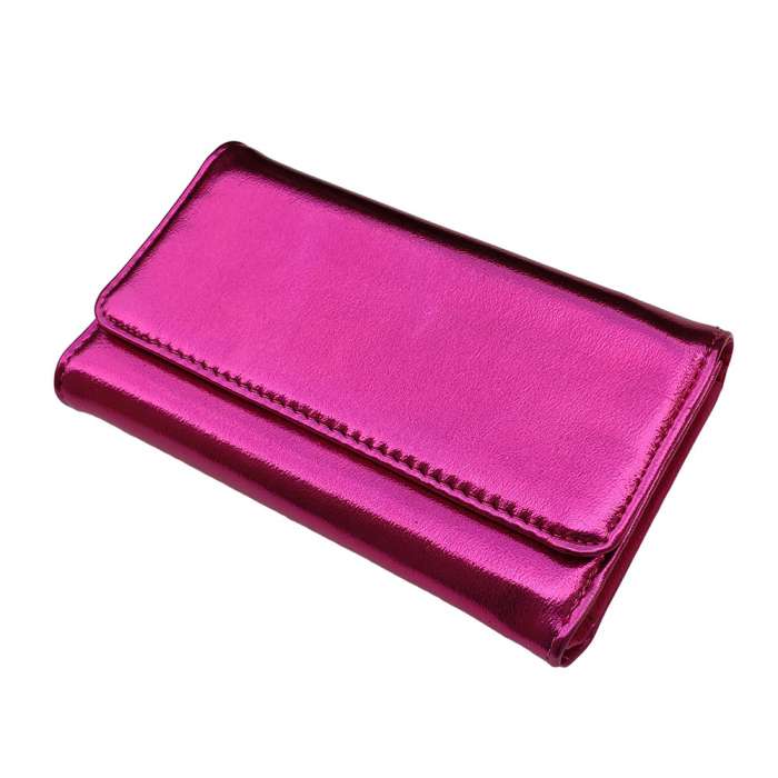 Compagnon porte monnaie rabat, grand format, fermeture pour la monnaie, couleur métallique en synthétique.