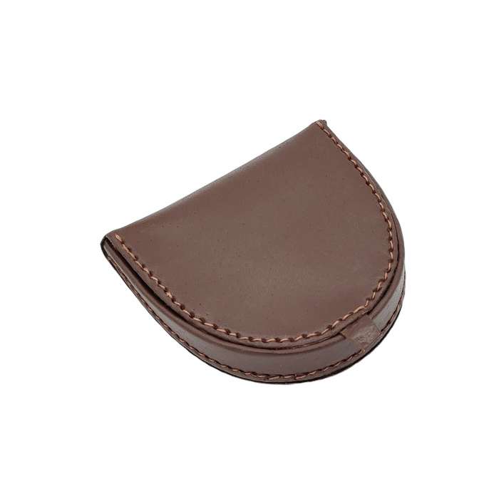 Porte-monnaie cuvette ronde en forme de fer à cheval, en croûte de cuir.