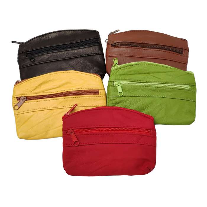 Porte-monnaie plat, 2 fermetures, cuir agneau.