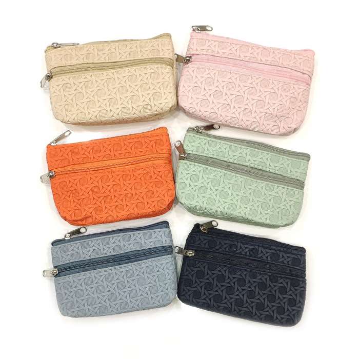 Petit porte-monnaie rectangulaire, 2 fermetures, en synthétique.