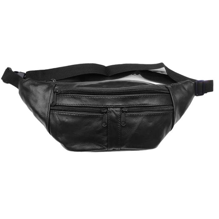 Sac banane grand format, 4 fermetures, en cuir vachette.