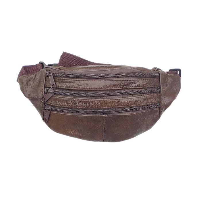 Sac banane petit format, 4 fermetures, en cuir vachette.