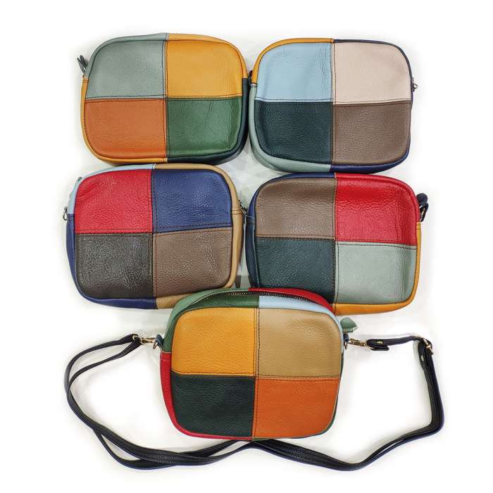 Sac pochette patchwork différent couleur assortie, bandoulière détachable et réglable, en cuir vachette.