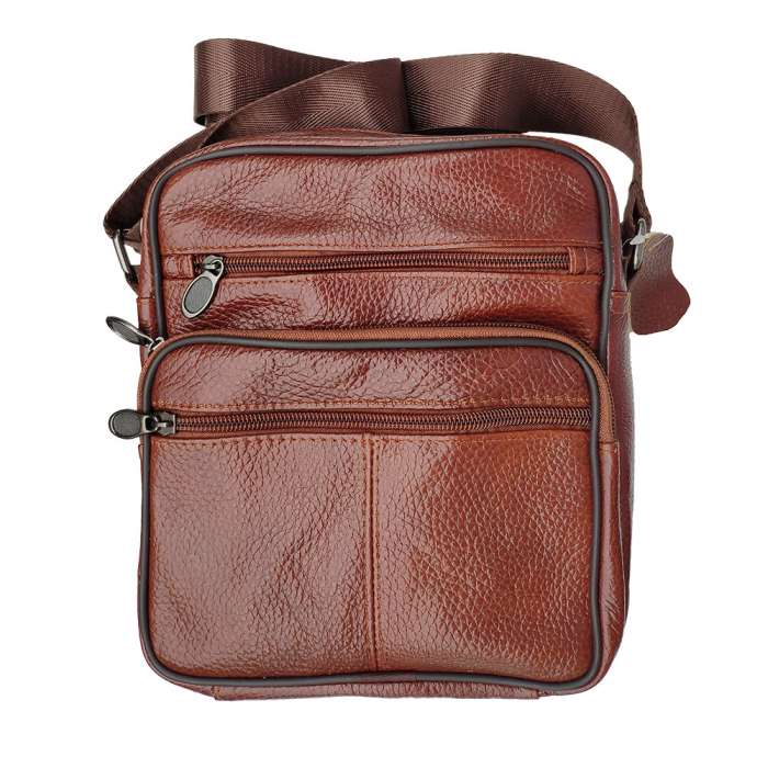Sacoche bandoulière, 5 fermetures, en beau cuir vachette.